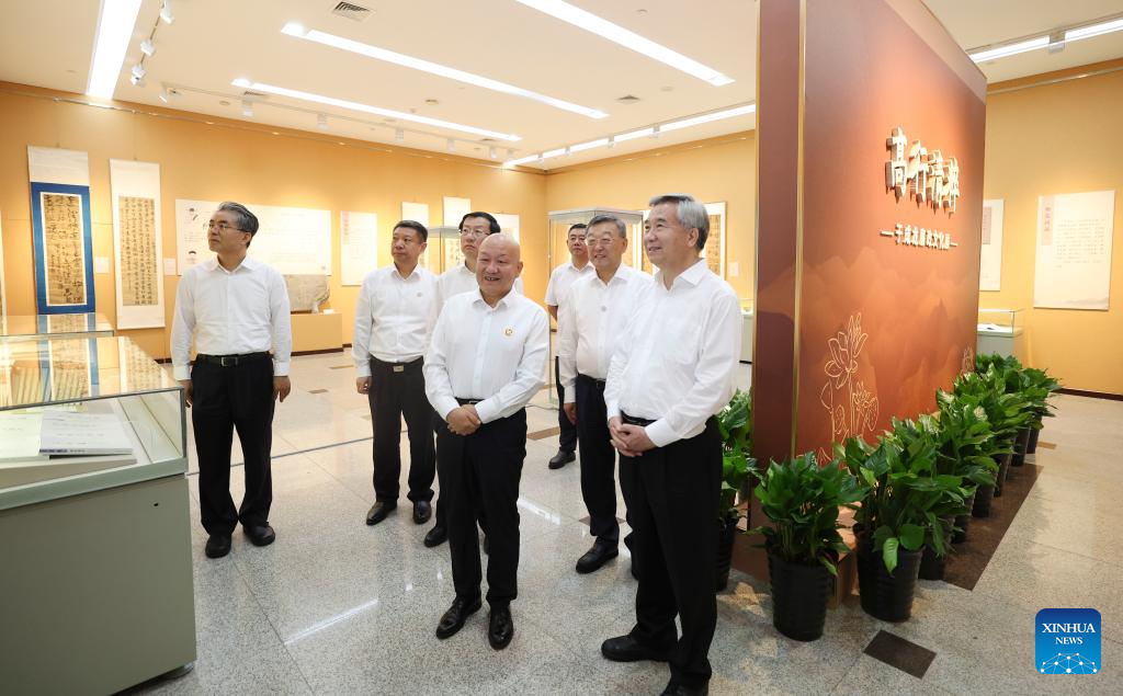 Li Xi, a member of the Standing Committee of the Political Bureau of the Communist Party of China (CPC) Central Committee and secretary of the CPC Central Commission for Discipline Inspection, visits the Shanxi Museum in north China's Shanxi Province, July 5, 2024. Li made an inspection tour in Shanxi Province from Tuesday to Friday. (Xinhua/Ding Haitao)