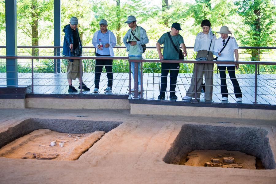A drone photo taken on July 4, 2024 shows a display spot of Southern City Wall Site at the Archaeological Ruins of Liangzhu City park in Hangzhou, capital city of east China's Zhejiang Province. (Xinhua/Jiang Han)A drone photo taken on July 4, 2024 shows the Mojiaoshan Palace Site at the Archaeological Ruins of Liangzhu City park in Hangzhou, capital city of east China's Zhejiang Province. (Xinhua/Jiang Han)People visit the Mojiaoshan Palace Site at the Archaeological Ruins of Liangzhu City park in Hangzhou, capital city of east China's Zhejiang Province, July 4, 2024.(Xinhua/Jiang Han)An aerial drone photo taken on July 4, 2024 shows the Land Gate Site at the Archaeological Ruins of Liangzhu City park in Hangzhou, capital city of east China's Zhejiang Province. (Xinhua/Jiang Han)This photo taken on July 4, 2024 shows the Land Gate Site at the Archaeological Ruins of Liangzhu City park in Hangzhou, capital city of east China's Zhejiang Province. (Xinhua/Jiang Han)People visit the Fanshan Cemetery Site at the Archaeological Ruins of Liangzhu City park in Hangzhou, capital city of east China's Zhejiang Province, July 4, 2024. (Xinhua/Jiang Han)An aerial drone photo taken on July 4, 2024 shows people taking sightseeing buses at the Archaeological Ruins of Liangzhu City park in Hangzhou, capital city of east China's Zhejiang Province. (Xinhua/Jiang Han)A drone photo taken on July 4, 2024 shows a display spot of Southern City Wall Site at the Archaeological Ruins of Liangzhu City park in Hangzhou, capital city of east China's Zhejiang Province. (Xinhua/Jiang Han)This photo taken on July 4, 2024 shows the Chizhongsi Granary Site at the Archaeological Ruins of Liangzhu City park in Hangzhou, capital city of east China's Zhejiang Province. (Xinhua/Jiang Han)People visit a display spot of Southern City Wall Site at the Archaeological Ruins of Liangzhu City park in Hangzhou, capital city of east China's Zhejiang Province, July 4, 2024. (Xinhua/Jiang Han)An aerial drone photo taken on July 4, 2024 shows the Archaeological Ruins of Liangzhu City park in Hangzhou, capital city of east China's Zhejiang Province. (Xinhua/Jiang Han)People visit the Mojiaoshan Palace Site at the Archaeological Ruins of Liangzhu City park in Hangzhou, capital city of east China's Zhejiang Province, July 4, 2024. (Xinhua/Jiang Han)■