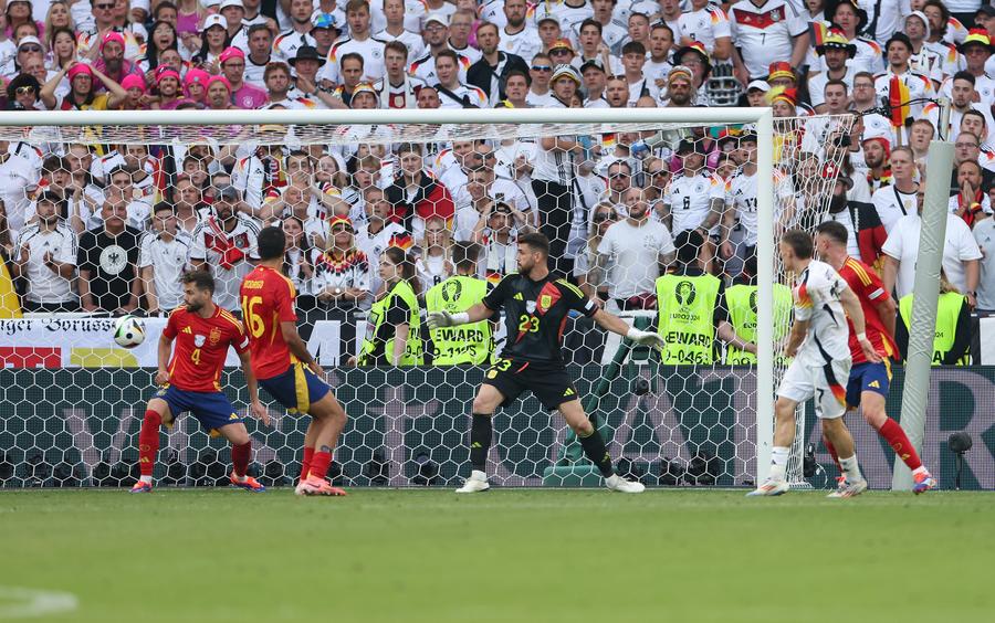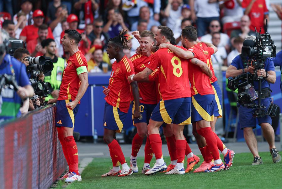 BERLIN, July 5 (Xinhua) -- Mikel Merino's 119th minute winner sent tournament host Germany packing and booked Spain a semifinal ticket at the Euro 2024 in Stuttgart's MHP-Arena on Friday.