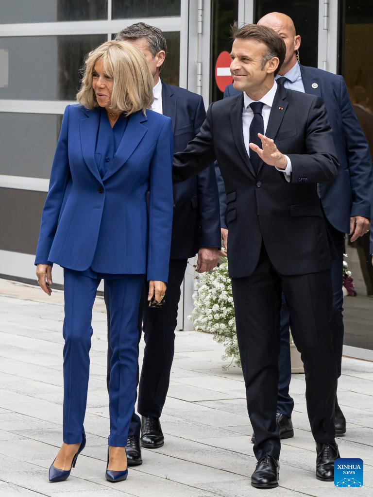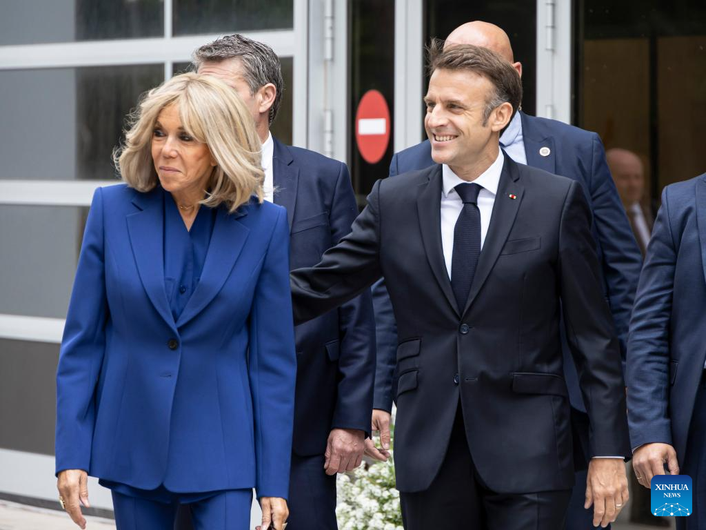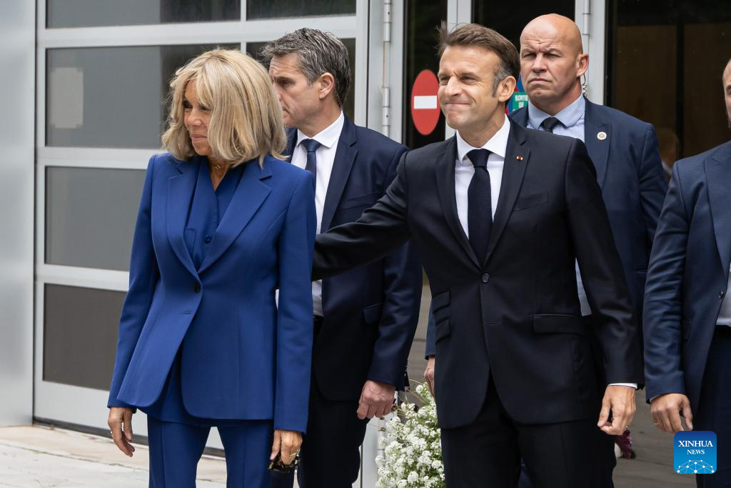 French President Emmanuel Macron and his wife Brigitte Macron arrive at a polling station in Le Touquet, northern France, July 7, 2024. The second and decisive round of France's snap legislative elections kicked off Sunday in Metropolitan France for voters to elect the remaining 501 members of the 577-seat French National Assembly. (Photo by Frank Bonham/Xinhua)