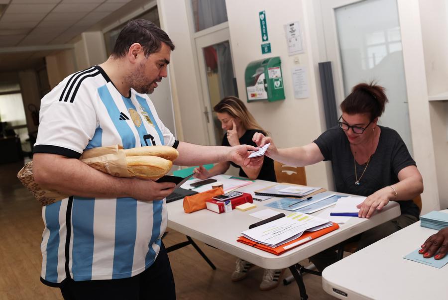 CLICHY-LA-GARENNE, July 7 (Xinhua) -- The second and decisive round of France's snap legislative elections kicked off Sunday in Metropolitan France for voters to elect the remaining 501 members of the 577-seat French National Assembly.