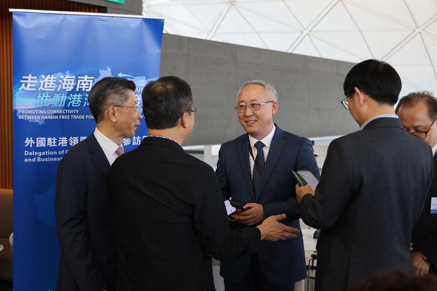 HONG KONG, July 9 (Xinhua) -- A delegation of consular corps and business communities in Hong Kong has departed from the Hong Kong Special Administrative Region (HKSAR) for south China's Hainan Province on a 5-day visit to explore broader synergy between the two dynamic export hubs.
