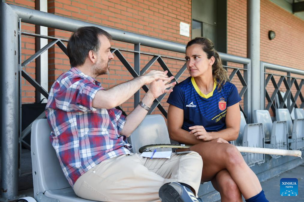 Spanish field hockey player Lola Riera is interviewed during the Media Day of Spanish women's field hockey team at the Madrid High Performance Center, in Madrid, Spain, July 9, 2024. (Photo by Gustavo Valiente/Xinhua)