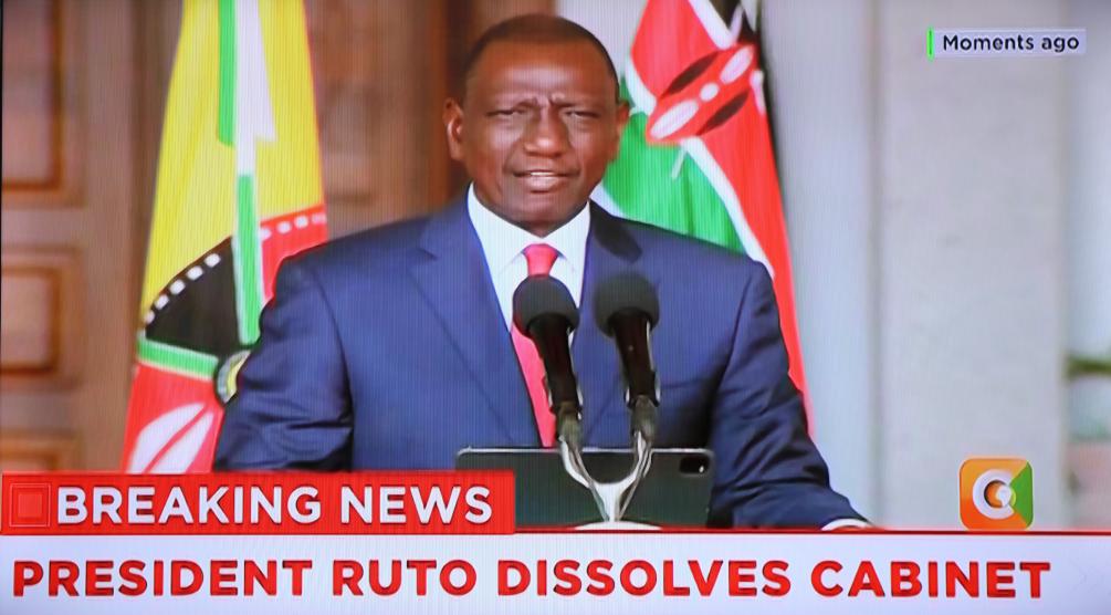"I have decided to dismiss with immediate effect all the cabinet secretaries and the attorney-general from the Cabinet of the Republic of Kenya, except the prime cabinet secretary and cabinet secretary for foreign and diaspora affairs," Ruto said.