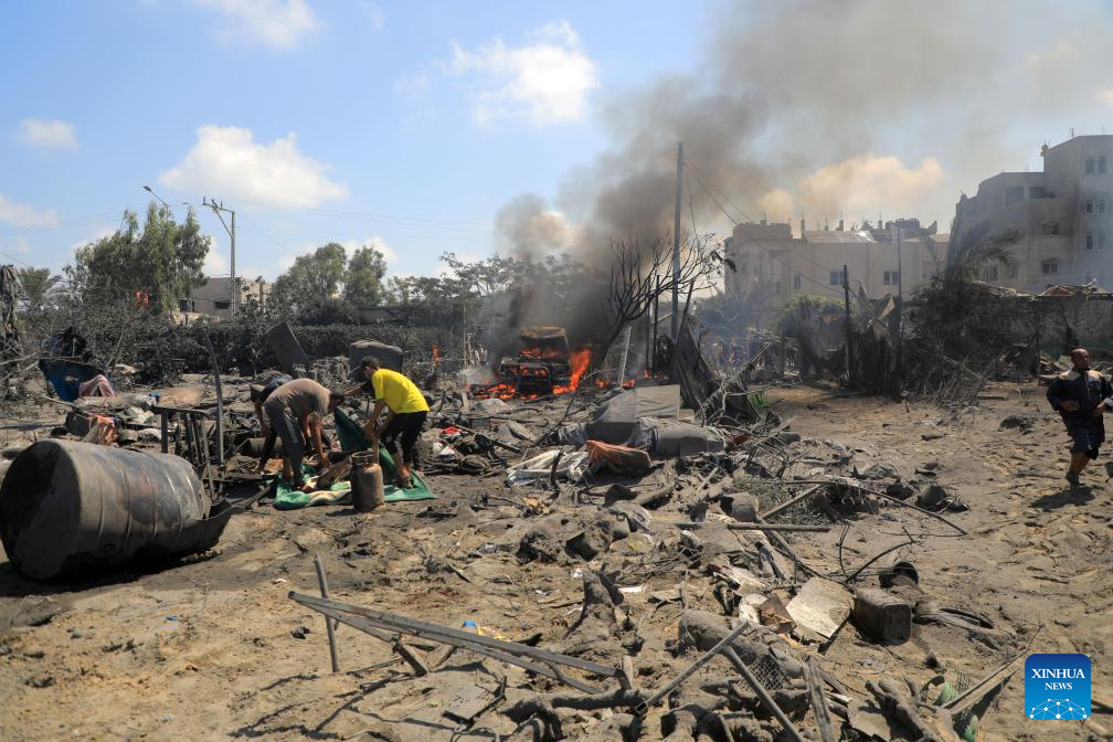 GAZA, July 13 (Xinhua) -- At least 71 Palestinians were killed and 289 others injured on Saturday by an Israeli airstrike that attacked tents of displaced people in the Mawasi area of the Khan Younis city in the south of Gaza, the Gaza health authorities said.
