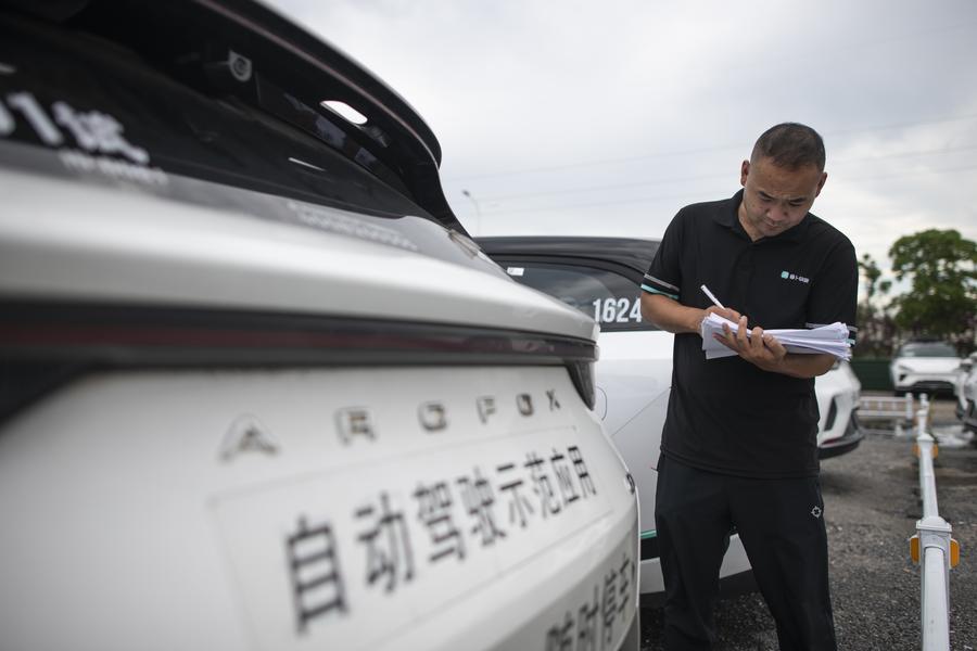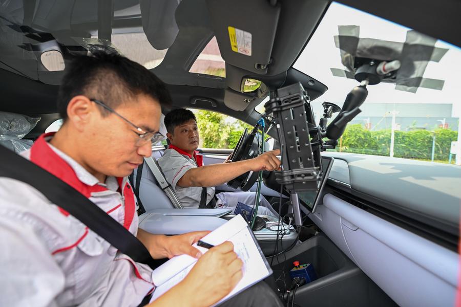 WUHAN, July 13 (Xinhua) -- Thanks to advances in electrification, networking, and intelligent transformation, along with progress in autonomous driving technologies, self-driving vehicles are gradually becoming a reality. As the industry develops, more professionals are becoming testers of self-driving vehicles. The profession "intelligent connected vehicle tester" was listed as one of 19 new professions by the Ministry of Human Resources and Social Security earlier this year.