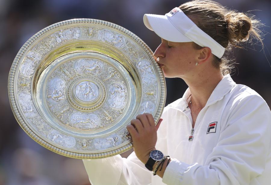LONDON, July 13 (Xinhua) -- Czech Barbora Krejcikova beat Jasmine Paolini of Italy in three sets to win the women's singles title at the Wimbledon Championships here on Saturday.