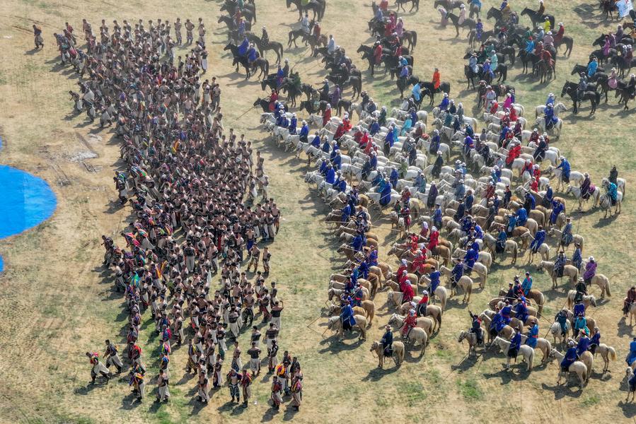 Wrestlers of traditional Mongolian style perform during the opening ceremony of the 34th Naadam festival in Xilin Gol League, north China's Inner Mongolia Autonomous Region, July 14, 2024. (Xinhua/Li Zhipeng)Artists perform during the opening ceremony of the 34th Naadam festival in Xilin Gol League, north China's Inner Mongolia Autonomous Region, July 14, 2024. (Xinhua/Li Zhipeng)Artists perform during the opening ceremony of the 34th Naadam festival in Xilin Gol League, north China's Inner Mongolia Autonomous Region, July 14, 2024. (Xinhua/Bei He)Actors perform during the opening ceremony of the 34th Naadam festival in Xilin Gol League, north China's Inner Mongolia Autonomous Region, July 14, 2024. (Xinhua/Bei He)Wrestlers of traditional Mongolian style perform during the opening ceremony of the 34th Naadam festival in Xilin Gol League, north China's Inner Mongolia Autonomous Region, July 14, 2024. (Xinhua/Bei He)Artists perform on horseback during the opening ceremony of the 34th Naadam festival in Xilin Gol League, north China's Inner Mongolia Autonomous Region, July 14, 2024. (Xinhua/Li Zhipeng)Artists perform on horseback during the opening ceremony of the 34th Naadam festival in Xilin Gol League, north China's Inner Mongolia Autonomous Region, July 14, 2024. (Xinhua/Li Zhipeng)Herders on horseback are pictured during the opening ceremony of the 34th Naadam festival in Xilin Gol League, north China's Inner Mongolia Autonomous Region, July 14, 2024. (Xinhua/Bei He)People in ethnic costume are pictured during the opening ceremony of the 34th Naadam festival in Xilin Gol League, north China's Inner Mongolia Autonomous Region, July 14, 2024. (Xinhua/Bei He)An aerial drone photo taken on July 14, 2024 shows the opening ceremony of the 34th Naadam festival in Xilin Gol League, north China's Inner Mongolia Autonomous Region. (Xinhua/Lian Zhen)Artists perform on horseback during the opening ceremony of the 34th Naadam festival in Xilin Gol League, north China's Inner Mongolia Autonomous Region, July 14, 2024. (Xinhua/Li Zhipeng)An aerial drone photo taken on July 14, 2024 shows the opening ceremony of the 34th Naadam festival in Xilin Gol League, north China's Inner Mongolia Autonomous Region. (Xinhua/Lian Zhen)An aerial drone photo taken on July 14, 2024 shows the opening ceremony of the 34th Naadam festival in Xilin Gol League, north China's Inner Mongolia Autonomous Region. (Xinhua/Lian Zhen)An aerial drone photo taken on July 14, 2024 shows wrestlers of traditional Mongolian style during the opening ceremony of the 34th Naadam festival in Xilin Gol League, north China's Inner Mongolia Autonomous Region. (Xinhua/Lian Zhen)Herders on horseback are pictured during the opening ceremony of the 34th Naadam festival in Xilin Gol League, north China's Inner Mongolia Autonomous Region, July 14, 2024. (Xinhua/Bei He)■