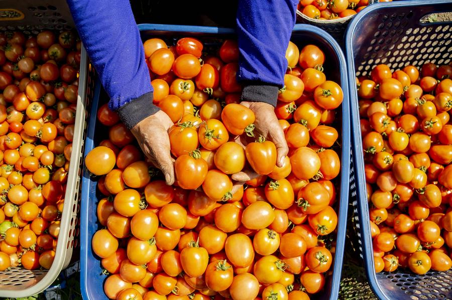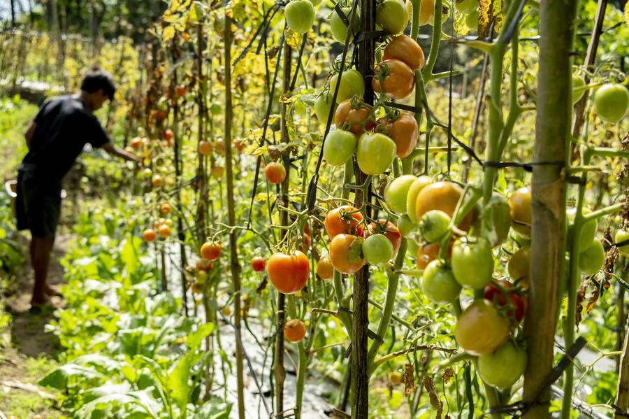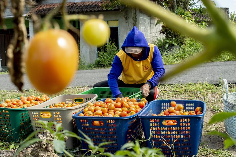 YOGYAKARTA, Indonesia, July 15 (Xinhua) -- Farmers were busy harvesting tomatoes at Wonokerto village in Sleman regency, Yogyakarta, Indonesia, sharing the joy of good yield after diligent cultivation.