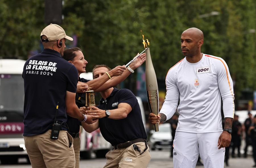 Tourists ride camels at the Mingshashan and the Crescent Lake, an oasis scenic spot in the Gobi Desert in Dunhuang, northwest China's Gansu Province, July 14, 2024. Many tourist destinations across China have recently seen a surge in visitors as the country enters its peak summer tourist season. (Photo by Zhang Xiaoliang/Xinhua)A staff member works at a factory of agricultural machinery in Da'an Town of Jining City, east China's Shandong Province, July 13, 2024. In recent years, Da'an Town has made efforts to develop the agricultural machinery industry. At present, the town is home to an industrial cluster comprising over 100 agricultural machinery-related enterprises. (Xinhua/Guo Xulei)Villagers of Wangjiaba inspect an embankment in Funan County of Fuyang, east China's Anhui Province, July 14, 2024. Measures including monitoring the flood water, inspecting embankment and ensuring flood-control materials have been taken by the authorities of Funan County to control the "No. 1 Flood" for Huaihe River. (Xinhua/Huang Bohan)Herders on horseback are pictured during the opening ceremony of the 34th Naadam festival in Xilin Gol League, north China's Inner Mongolia Autonomous Region, July 14, 2024. The Naadam festival kicked off here on July 14. Naadam, usually held in mid-summer and sometimes in winter in pastoral areas of Inner Mongolia, means "games" in the Mongolian language. It often comprises wrestling, archery, and horse racing, also known as the "Three Games of Men." (Xinhua/Bei He)Supporters of Rwandan Patriotic Front (RPF) cheer ahead of the arrival of the incumbent President of Rwanda and presidential candidate for the RPF Paul Kagame during a campaign rally in Kigali, Rwanda, on July 12, 2024. (Xinhua/Wang Guansen)People gather to watch the French Air Force performance during the Bastille Day military parade with the Arc de Triomphe in the background in Paris, France, on July 14, 2024. (Xinhua/Gao Jing)Birds are seen at sunset on Mogan lake in Ankara, Türkiye, July 13, 2024. (Mustafa Kaya/Handout via Xinhua)People in traditional attires perform during a traditional wedding ceremony at the mountainous village of Galicnik, some 150km southwest of Skopje, North Macedonia, on July 13, 2024. (Photo by Tomislav Georgiev/Xinhua)French football Olympics 2024 coach Thierry Henry (1st R) holds the Olympic torch as officials light the torch during the Olympic Games Paris 2024 Torch Relay in Paris, France, July 14, 2024. (Xinhua/Gao Jing)■