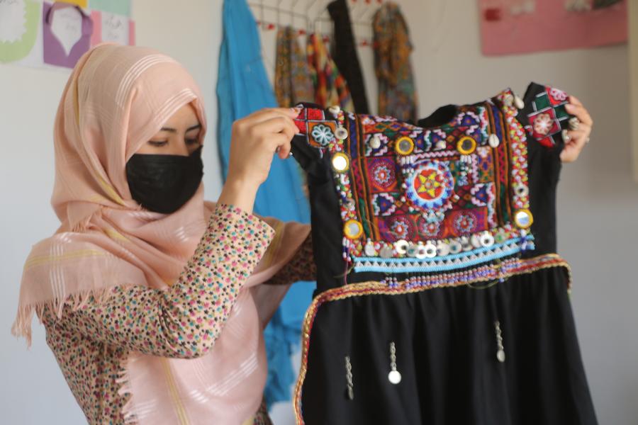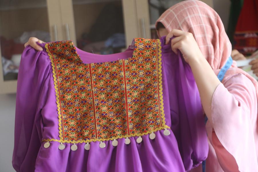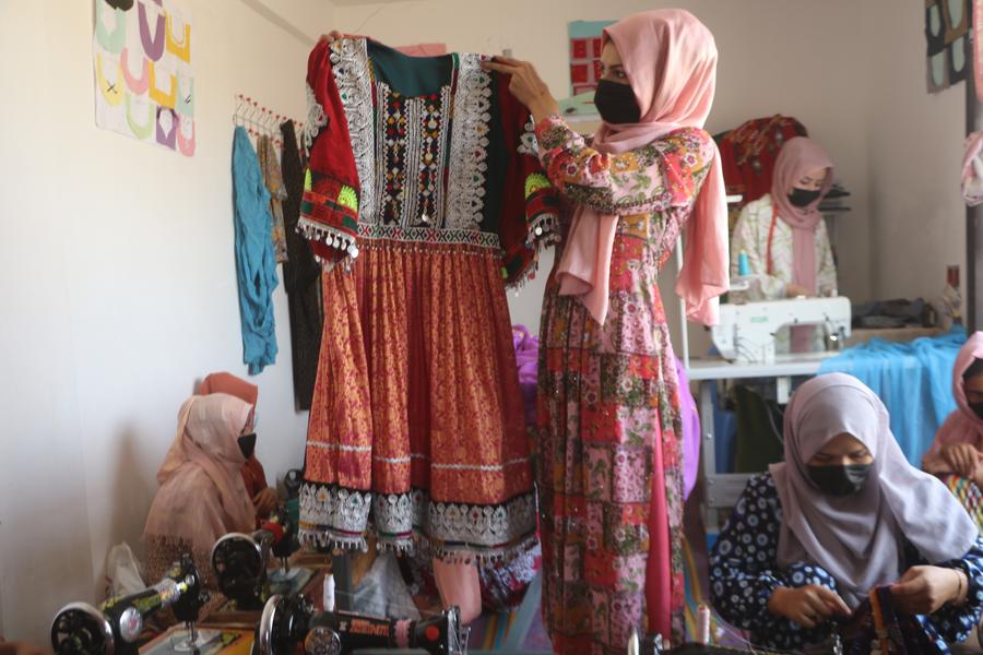 A woman works on traditional clothes at a tailor workshop run by a woman entrepreneur in Jawzjan province, Afghanistan, July 14, 2024. (Photo by Ahmad Zubair/Xinhua)A woman shows a traditional dress at a tailor workshop run by a woman entrepreneur in Jawzjan province, Afghanistan, July 14, 2024. (Photo by Ahmad Zubair/Xinhua)Women work at a tailor workshop run by a woman entrepreneur in Jawzjan province, Afghanistan, July 14, 2024. (Photo by Ahmad Zubair/Xinhua)A woman shows a traditional dress at a tailor workshop run by a woman entrepreneur in Jawzjan province, Afghanistan, July 14, 2024. (Photo by Ahmad Zubair/Xinhua)A woman shows a traditional dress at a tailor workshop run by a woman entrepreneur in Jawzjan province, Afghanistan, July 14, 2024. (Photo by Ahmad Zubair/Xinhua)■