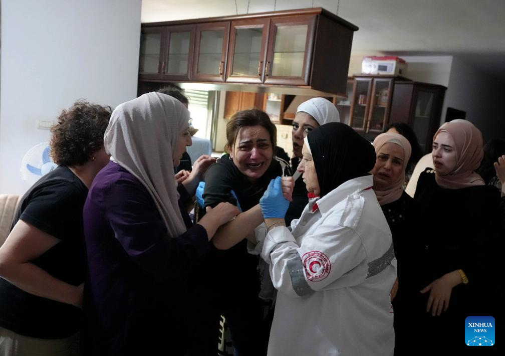 Relatives mourn Ahmed Sultan killed by Israeli soldiers during clashes in Al-Bireh city in the central West Bank, on July 16, 2024. A Palestinian man was shot dead on Tuesday by the Israeli army during a raid in the central West Bank, Palestinian sources said, while Israeli sources accused him of trying to carry out a stabbing attack against soldiers. (Photo by Nidal Eshtayeh/Xinhua)
