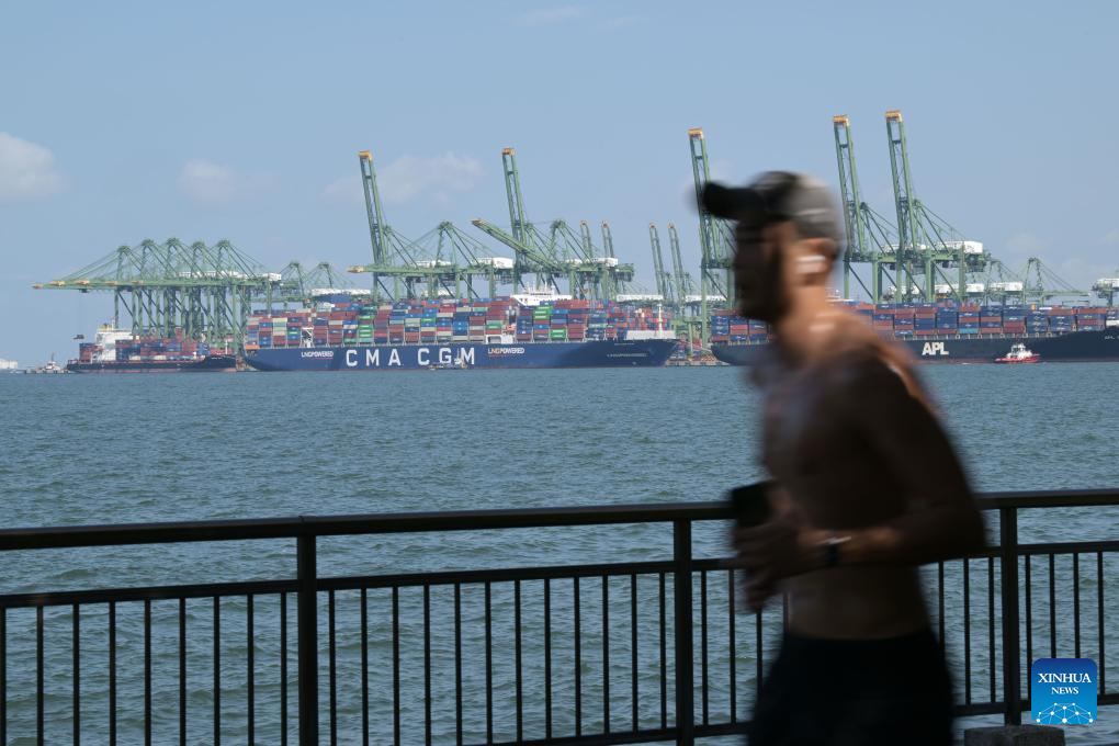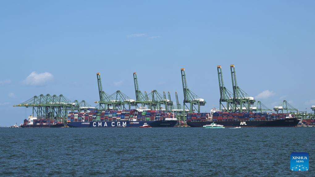 Ships berth along the Pasir Panjang Terminal in Singapore on July 18, 2024. The non-oil domestic exports (NODX) in Singapore contracted 8.7 percent year-on-year in June, extending the 0.7 percent decline in May, the government agency Enterprise Singapore said Wednesday. (Photo by Then Chih Wey/Xinhua)