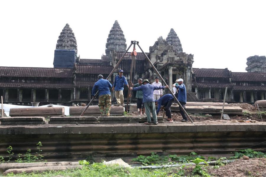 Soy Sophearin, head of the Angkor Wat restoration site, said the restoration work has begun since the middle of May, reinforcing the structure's foundation as well as repairing and cleaning stairs and Naga balustrade.