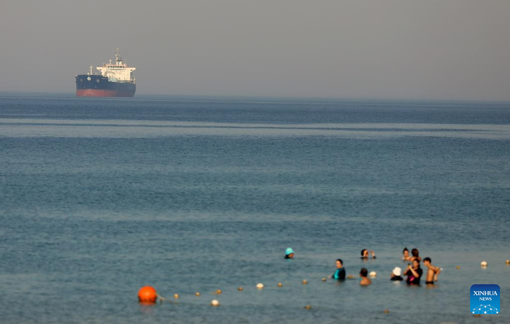 A ship sails through the Gulf of Suez, Suez Governorate, Egypt, July 18, 2024. The Egyptian Suez Canal's annual revenue dropped by about 23.4 percent in the fiscal year 2023/2024 due to the Red Sea crisis, Osama Rabie, chairman of the Suez Canal Authority (SCA), said in a statement on Thursday. (Xinhua/Ahmed Gomaa)