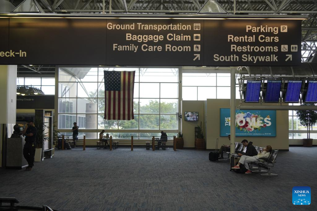 Photo taken on July 19, 2024 shows the security check area of the Milwaukee Mitchell International Airport in Milwaukee, Wisconsin, the United States. Multiple U.S. airlines said their flights would be delayed or canceled on Friday due to technical issues involving cybersecurity giant CrowdStrike and Microsoft. (Xinhua/Wu Xiaoling)