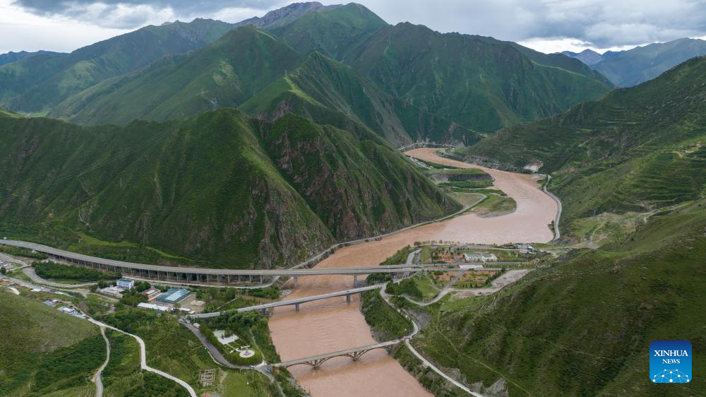 An aerial drone photo taken on July 20, 2024 shows the Tongtian River, the major source of the Yangtze River, in Yushu Tibetan Autonomous Prefecture, northwest China's Qinghai Province. Chinese scientists launched an expedition on Saturday in the headwater regions of the Yangtze and Lancang rivers in northwest China's Qinghai Province, to investigate the regions' water resources and ecological environment.
