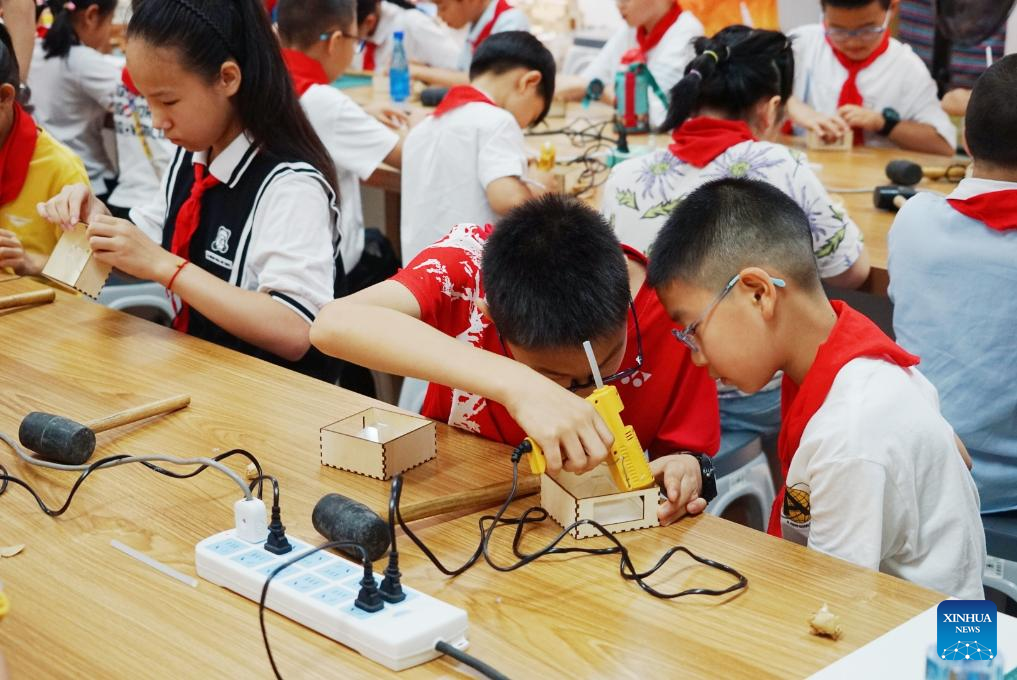 HANGZHOU, July 22 (Xinhua) -- As the blazing sun beats down outside this summer, the lively sounds of rubber hammers pounding fill a workshop in eastern Chinese coastal city of Ningbo in Zhejiang Province. Inside, 28 children are enthusiastically hammering away.