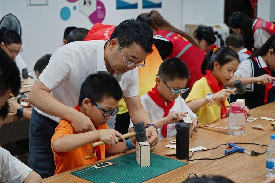 HANGZHOU, July 22 (Xinhua) -- As the blazing sun beats down outside this summer, the lively sounds of rubber hammers pounding fill a workshop in eastern Chinese coastal city of Ningbo in Zhejiang Province. Inside, 28 children are enthusiastically hammering away.