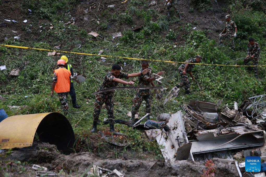 KATHMANDU, July 24 (Xinhua) -- Eighteen dead bodies have been recovered after a plane crashed on Wednesday at the Tribhuvan International Airport in Kathmandu, Nepal's capital, said Hansa Raj Pandey, spokesman at the Civil Aviation Authority of Nepal (CAAN).