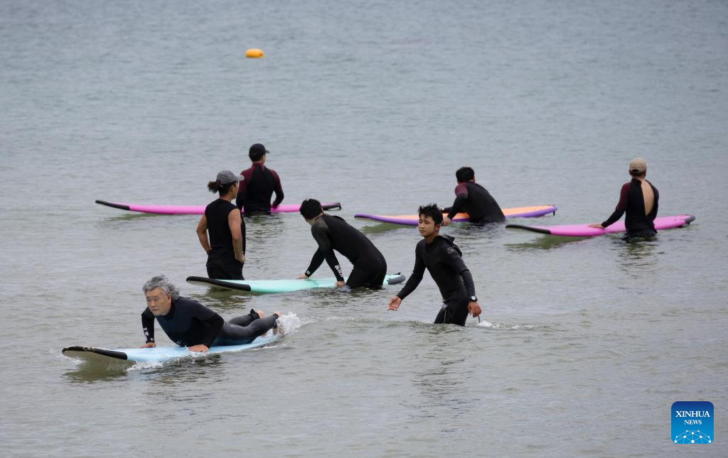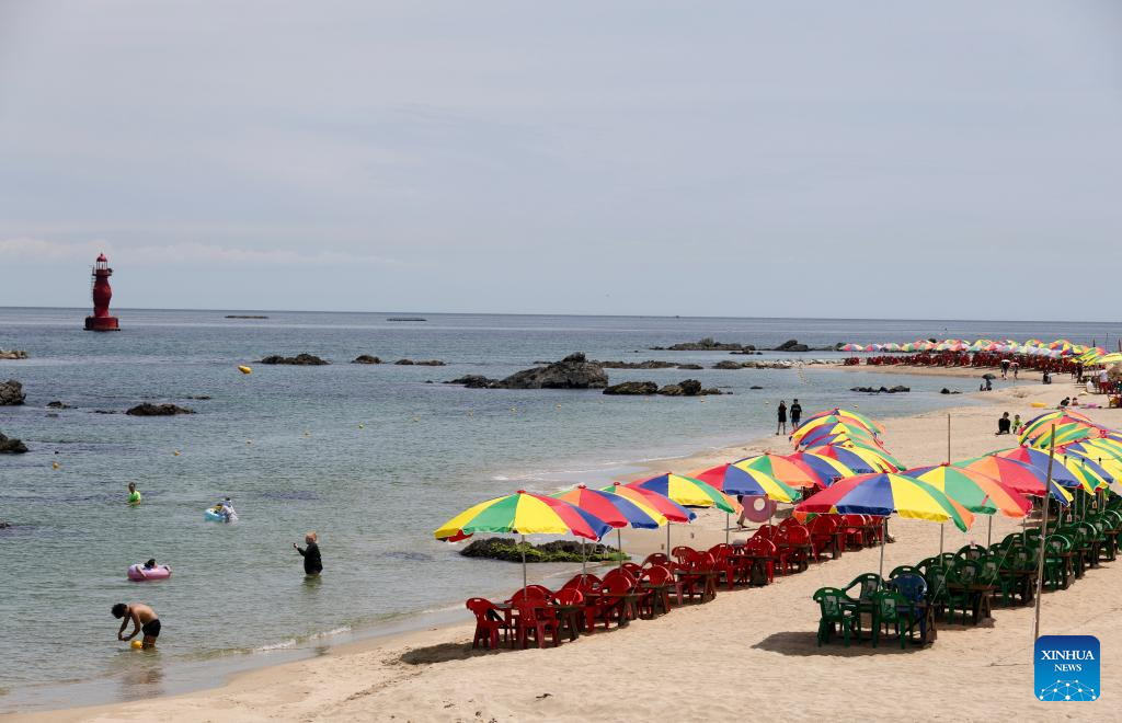 Tourists have fun on the beach in Donghae city, Gangwon province, South Korea, July 24, 2024. (Photo by Jun Hyosang/Xinhua)