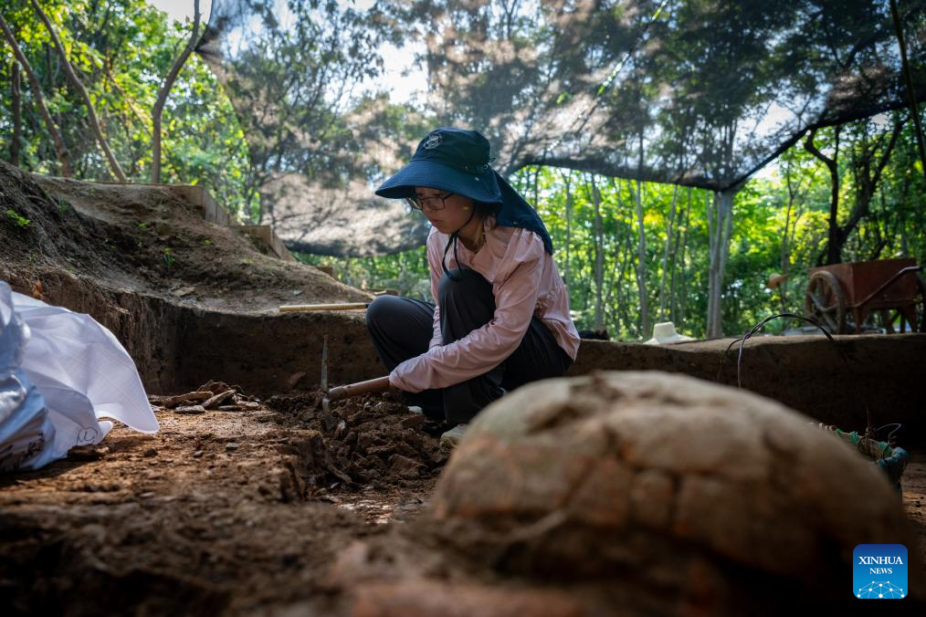 A participant from China works at an excavation site at the Panlongcheng National Archaeological Site Park in Wuhan, central China's Hubei Province, July 24, 2024. As part of Wuhan University's summer programs, the international summer school on archaeology is held at the Panlongcheng National Archaeological Site Park in Wuhan. This school offers opportunities to 9 students from home and abroad to participate in a five-week program, including lectures and field work. (Xinhua/Hu Jingwen)