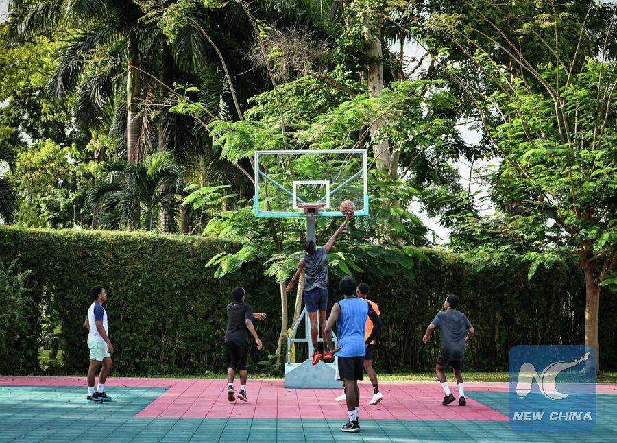 People play basketball at Malabo National Park in Malabo, the capital of Equatorial Guinea, May 19, 2024. (Xinhua/Han Xu)