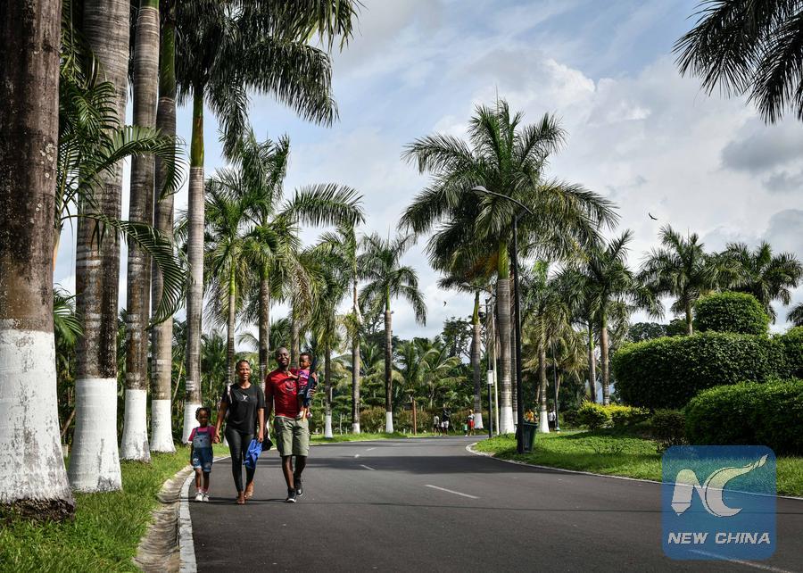 Visitors stroll at Malabo National Park in Malabo, the capital of Equatorial Guinea, May 19, 2024. (Xinhua/Han Xu)