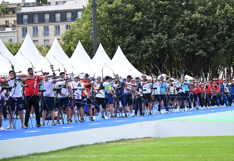 PARIS, July 25 (Xinhua) -- Olympic record holder Kim Woo-jin of South Korea ranked first with 686 shots in the archery men's individual ranking round at the Paris Olympics on Thursday, followed by his compatriot Kim Je-deok with a season-best of 682 shots.
