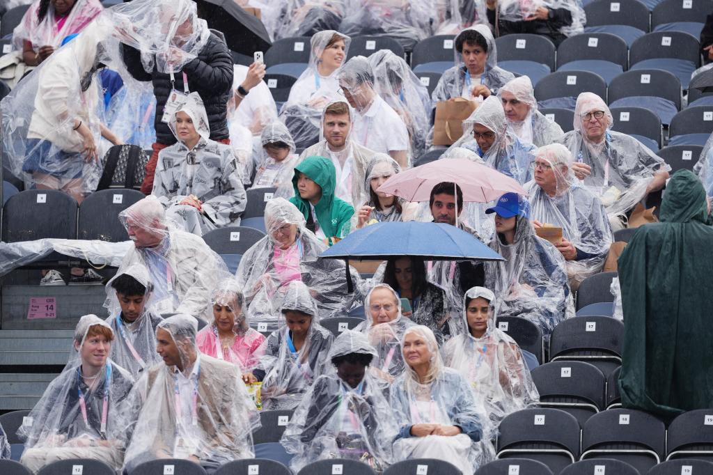 There is also something important to know about Paris that the French keep quiet: it is a northern European city and the weather isn't always dependable. No surprise, therefore, when a sudden downpour at around 5:30pm had reporters in the outdoor stands scrambling for cover and hurrying to cover their laptops with the plastic sheets provided by the organizers.