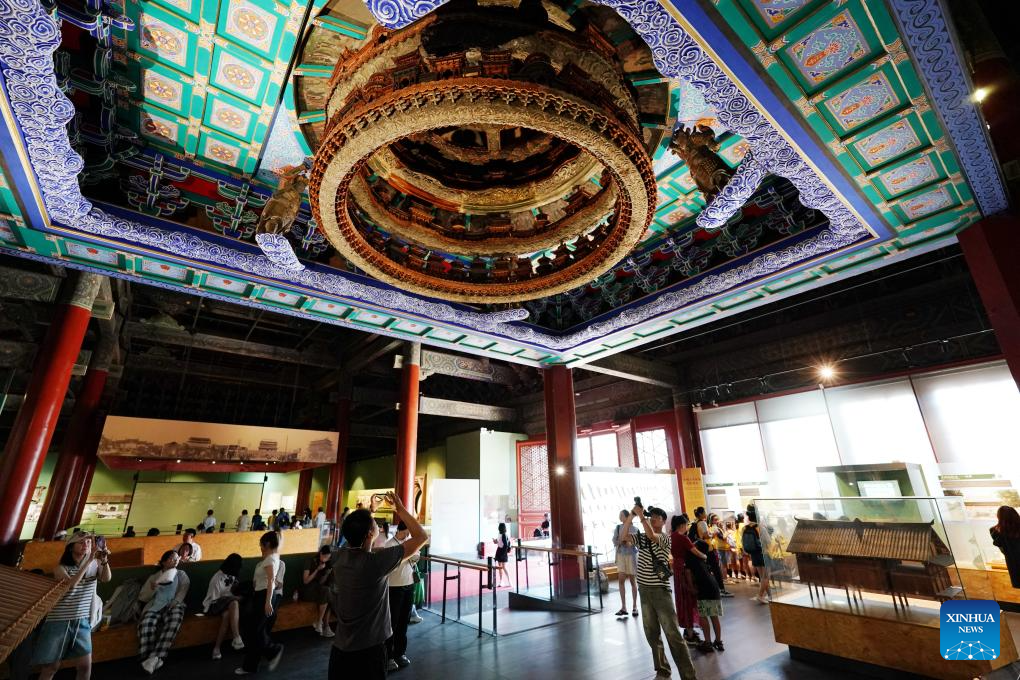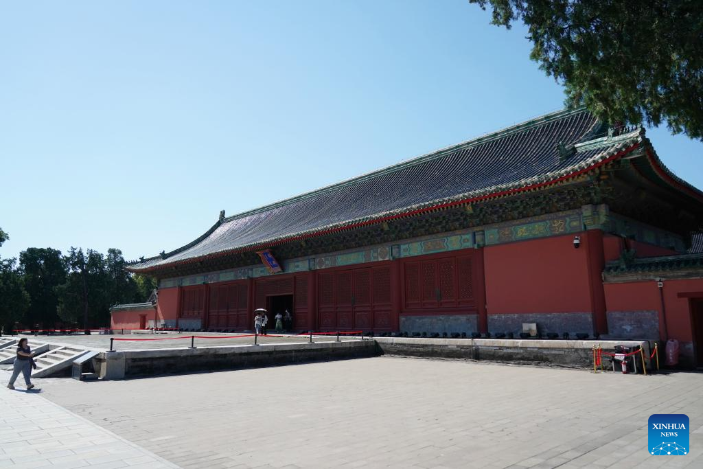 Tourists visit Taisui hall of the Altar of the God of Agriculture in Beijing, capital of China, July 17, 2024. (Xinhua/Zhang Chenlin)