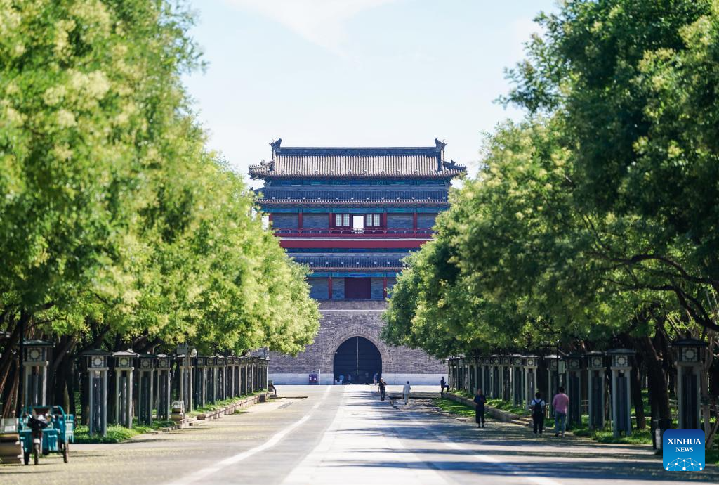 The heritage area of the Beijing Central Axis covers 589 hectares, with a buffer zone of 4,542 hectares. Its location, layout, urban form, and design reflect the ancient Chinese tradition of urban planning, serving as an important emblem that highlights the distinctive characteristics of Chinese civilization. (Xinhua/Zhang Chenlin)