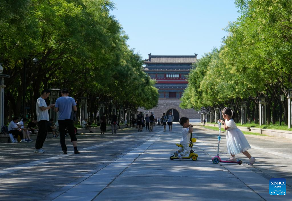Tourists visit Yongdingmen Park in Beijing, capital of China, July 18, 2024. (Xinhua/Ju Huanzong)