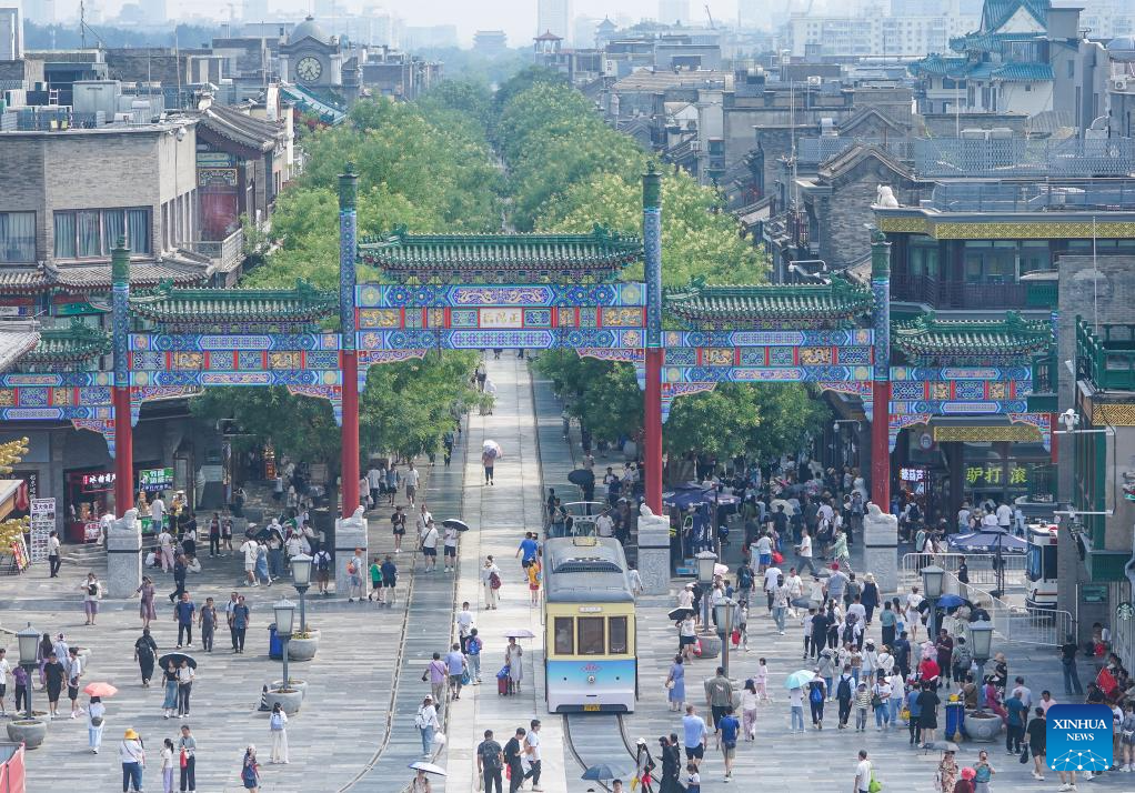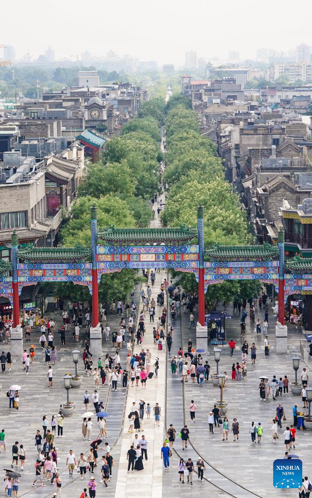 Tourists visit Qianmen Street in Beijing, capital of China, July 17, 2024. (Xinhua/Zhang Chenlin)