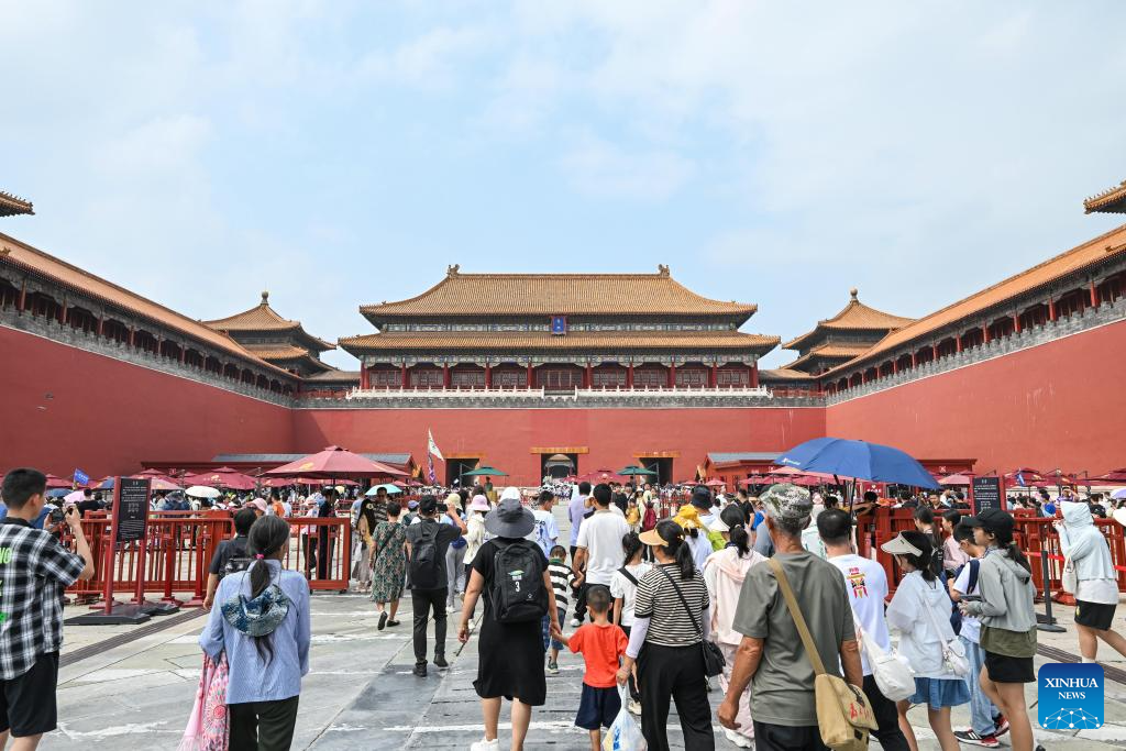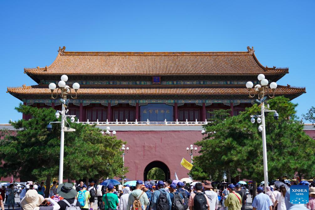 Tourists are seen at the Wumen Gate of the Forbidden City in Beijing, capital of China, July 16, 2024. (Xinhua/Chen Yehua)