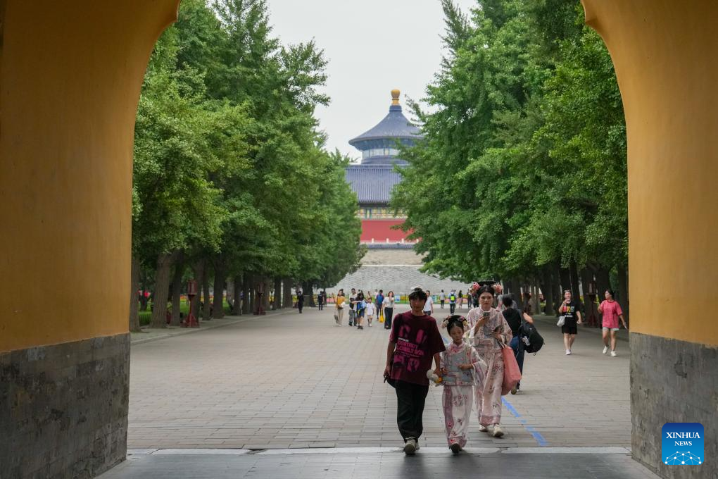 Tourists visit the Temple of Heaven in Beijing, capital of China, June 25, 2024. (Xinhua/Ju Huanzong)