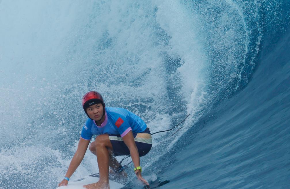 TAHITI, July 27 (Xinhua) -- China's teenage surfer Yang Siqi put on a brave performance when the Olympic surfing competition kicked off in Tahiti on Saturday.
