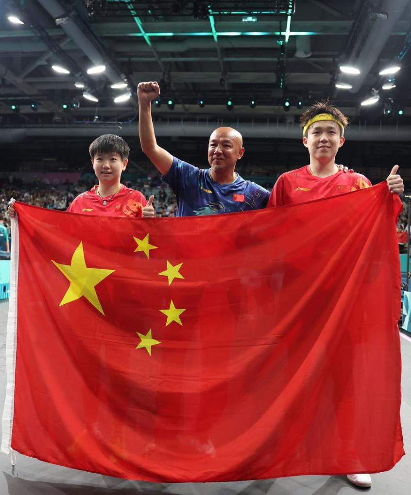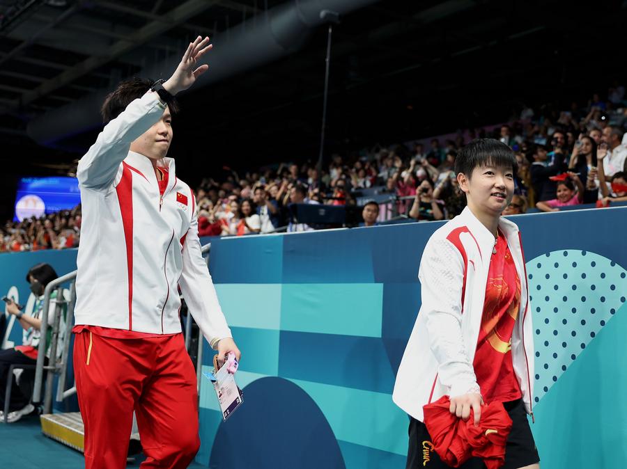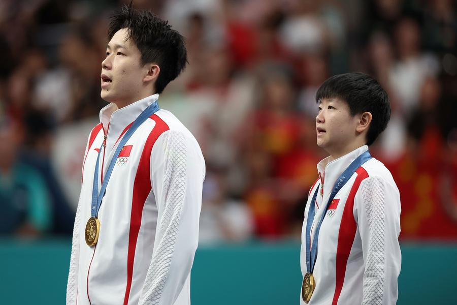Wang Chuqin (R)/Sun Yingsha of China compete during the mixed doubles gold medal table tennis match between Wang Chuqin/Sun Yingsha of China and Ri Jong Sik/Kim Kum Yong of the Democratic People's Republic of Korea at the Paris 2024 Olympic Games in Paris, France, on July 30, 2024. (Xinhua/Wang Dongzhen)Wang Chuqin (L)/Sun Yingsha of China compete during the mixed doubles gold medal table tennis match between Wang Chuqin/Sun Yingsha of China and Ri Jong Sik/Kim Kum Yong of the Democratic People's Republic of Korea at the Paris 2024 Olympic Games in Paris, France, on July 30, 2024. (Xinhua/Wang Dongzhen)Wang Chuqin (L)/Sun Yingsha of China compete during the mixed doubles gold medal table tennis match between Wang Chuqin/Sun Yingsha of China and Ri Jong Sik/Kim Kum Yong of the Democratic People's Republic of Korea at the Paris 2024 Olympic Games in Paris, France, on July 30, 2024. (Xinhua/Wang Dongzhen)Ri Jong Sik (R)/Kim Kum Yong of the Democratic People's Republic of Korea react during the mixed doubles gold medal table tennis match between Wang Chuqin/Sun Yingsha of China and Ri Jong Sik/Kim Kum Yong of the Democratic People's Republic of Korea at the Paris 2024 Olympic Games in Paris, France, on July 30, 2024. (Xinhua/Wang Dongzhen)Wang Chuqin (L)/Sun Yingsha of China compete during the mixed doubles gold medal table tennis match between Wang Chuqin/Sun Yingsha of China and Ri Jong Sik/Kim Kum Yong of the Democratic People's Republic of Korea at the Paris 2024 Olympic Games in Paris, France, on July 30, 2024. (Xinhua/Wang Dongzhen)Wang Chuqin (1st L)/Sun Yingsha (3rd L) of China and Ri Jong Sik (2nd L)/Kim Kum Yong of the Democratic People's Republic of Korea are seen during the mixed doubles gold medal table tennis match between Wang Chuqin/Sun Yingsha of China and Ri Jong Sik/Kim Kum Yong of the Democratic People's Republic of Korea at the Paris 2024 Olympic Games in Paris, France, on July 30, 2024. (Xinhua/Wang Dongzhen)Coach Xiao Zhan (C) instructs Wang Chuqin (L)/Sun Yingsha of China during the mixed doubles gold medal table tennis match between Wang Chuqin/Sun Yingsha of China and Ri Jong Sik/Kim Kum Yong of the Democratic People's Republic of Korea at the Paris 2024 Olympic Games in Paris, France, on July 30, 2024. (Xinhua/Wang Dongzhen)Wang Chuqin of China reacts during the mixed doubles gold medal table tennis match between Wang Chuqin/Sun Yingsha of China and Ri Jong Sik/Kim Kum Yong of the Democratic People's Republic of Korea at the Paris 2024 Olympic Games in Paris, France, on July 30, 2024. (Xinhua/Liu Xu)Wang Chuqin (L)/Sun Yingsha of China compete during the mixed doubles gold medal table tennis match between Wang Chuqin/Sun Yingsha of China and Ri Jong Sik/Kim Kum Yong of the Democratic People's Republic of Korea at the Paris 2024 Olympic Games in Paris, France, on July 30, 2024. (Xinhua/Wang Dongzhen)Coach Xiao Zhan (C) and Wang Chuqin (R)/Sun Yingsha of China celebrate after the mixed doubles gold medal table tennis match between Wang Chuqin/Sun Yingsha of China and Ri Jong Sik/Kim Kum Yong of the Democratic People's Republic of Korea at the Paris 2024 Olympic Games in Paris, France, on July 30, 2024. (Xinhua/Liu Xu)Wang Chuqin (R)/Sun Yingsha of China celebrate after the mixed doubles gold medal table tennis match between Wang Chuqin/Sun Yingsha of China and Ri Jong Sik/Kim Kum Yong of the Democratic People's Republic of Korea at the Paris 2024 Olympic Games in Paris, France, on July 30, 2024. (Xinhua/Wang Dongzhen)Wang Chuqin (L)/Sun Yingsha of China are seen after the mixed doubles gold medal table tennis match between Wang Chuqin/Sun Yingsha of China and Ri Jong Sik/Kim Kum Yong of the Democratic People's Republic of Korea at the Paris 2024 Olympic Games in Paris, France, on July 30, 2024. (Xinhua/Liu Xu)Wang Chuqin (L)/Sun Yingsha of China attend the awarding ceremony after the mixed doubles gold medal table tennis match between Wang Chuqin/Sun Yingsha of China and Ri Jong Sik/Kim Kum Yong of the Democratic People's Republic of Korea at the Paris 2024 Olympic Games in Paris, France, on July 30, 2024. (Xinhua/Liu Xu)Wang Chuqin (L)/Sun Yingsha of China attend the awarding ceremony after the mixed doubles gold medal table tennis match between Wang Chuqin/Sun Yingsha of China and Ri Jong Sik/Kim Kum Yong of the Democratic People's Republic of Korea at the Paris 2024 Olympic Games in Paris, France, on July 30, 2024. (Xinhua/Liu Xu)■