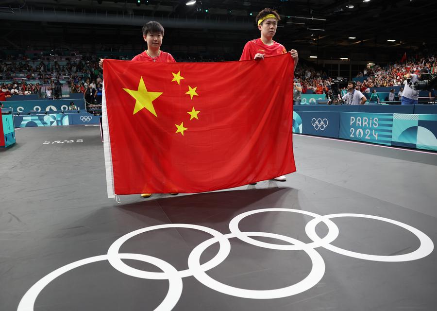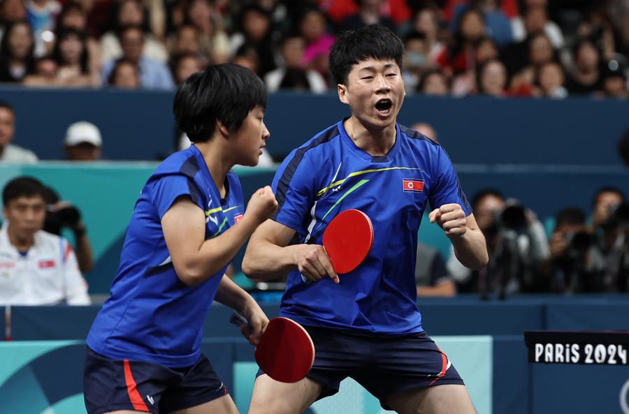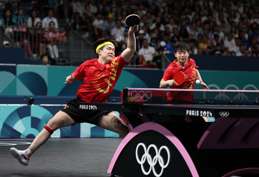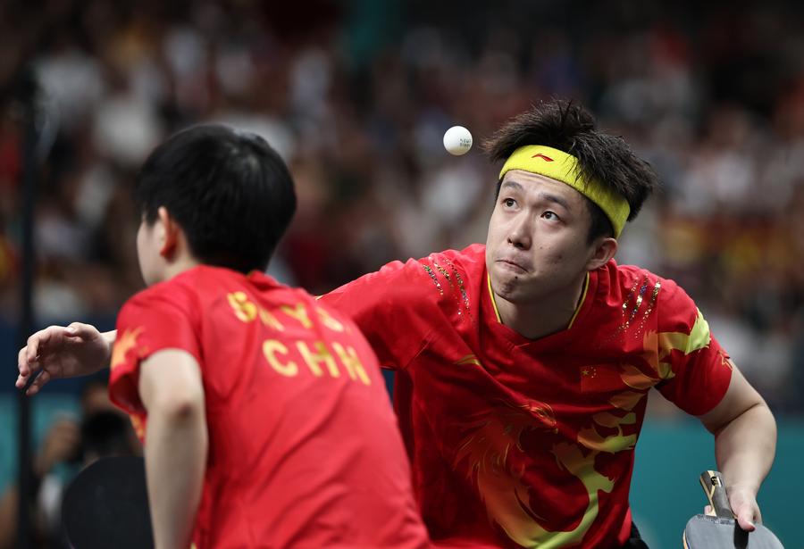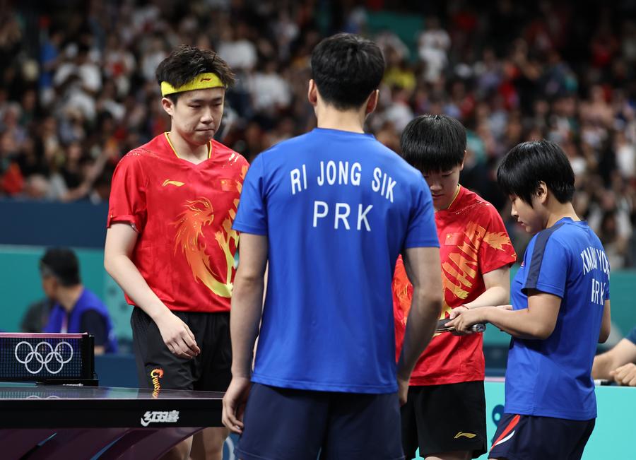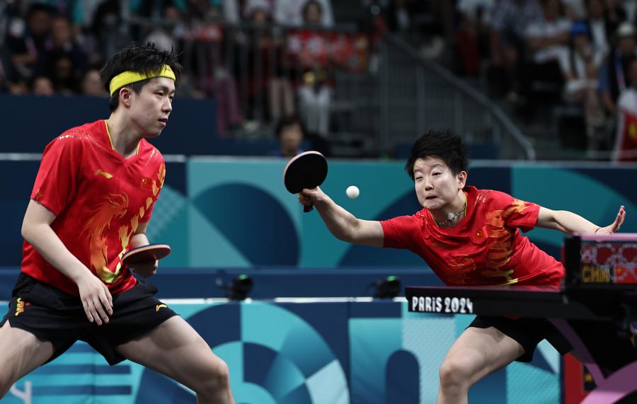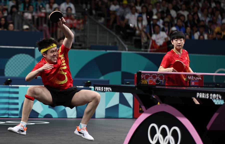 PARIS, July 30 (Xinhua) -- Chinese pair Wang Chuqin and Sun Yingsha won the gold medal of table tennis mixed doubles at the Paris Olympics here on Tuesday, after beating Ri Jong Sik and Kim Kum Yong of DPR Korea 4-2 in the final.