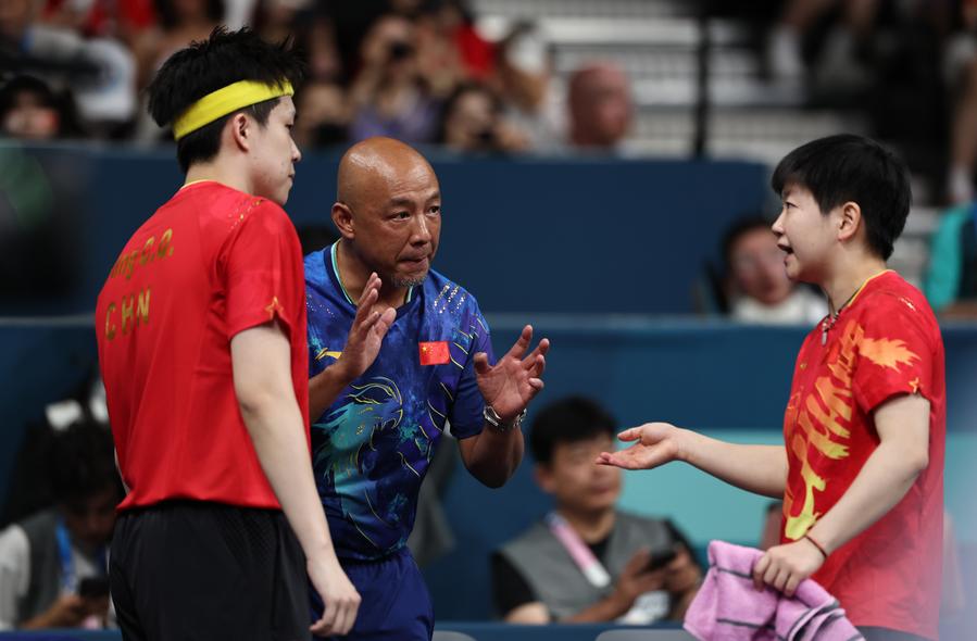 (PARIS2024)In pics: China's Wang and Sun win table tennis mixed doubles gold at Paris Olympics-Xinhua