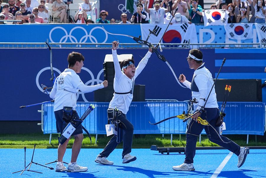 Athletes of team China celebrate victory after the volleyball women's preliminary round pool A match between China and the United States at the Paris 2024 Olympic Games in Paris, France, July 29, 2024. (Xinhua/Lai Xiangdong)Bazarbay Uulu Mukhammedsabyr (red) of Kazakhstan competes against Chu En Lai of Chinese Taipei during the boxing men's 63.5kg preliminaries round of 16 match of Paris 2024 Olympic Games in Paris, France, July 29, 2024. (Xinhua/Jiang Wenyao)Emma Weyant of the United States competes during the Women's 400m Individual Medley Heat of swimming at the Paris 2024 Olympic Games in Paris, France, July 29, 2024. (Xinhua/Wang Peng)Cheung Ka Long of China's Hong Kong (bottom) competes during the men's foil final of fencing against Filippo Macchi of Italy at the Paris 2024 Olympic Games in Paris, France, July 29, 2024. (Xinhua/Chen Yichen)Team South Korea celebrate after the men's team gold medal match between South Korea and France of archery at the Paris 2024 Olympic Games in Paris, France, July 29, 2024. (Xinhua/Zhu Zheng)Mountain Bike women's cross-country gold medalist Pauline Ferrand Prevot of France cries at Champions Park for the Paris 2024 Olympic Games in Paris, France, July 29, 2024. (Xinhua/Li Ying)An aerial drone photo taken on July 29, 2024 shows rescuers searching for flood-affected residents near a dike breach in Yisuhe Town of Xiangtan County, central China's Hunan Province. A dike breach took place around 8 p.m. Sunday in the section of Juanshui River in Yisuhe Township, with more than 3,800 residents evacuated as of Monday morning. (Xinhua/Chen Sihan)An opera troupe member prepares for a show in Longshengzhuang Township of Fengzhen City, north China's Inner Mongolia Autonomous Region, July 26, 2024. (Xinhua/Lian Zhen)Siberian tigers are pictured in the Siberian Tiger Park in Harbin, northeast China's Heilongjiang Province, July 29, 2024. Monday marked the 14th International Tiger Day. (Xinhua/Zhang Tao)An aerial drone photo taken on July 29, 2024 shows people celebrating a torch festival in Weining County, southwest China's Guizhou Province. (Xinhua/Yang Wenbin)U.S. President Joe Biden walks toward the South Lawn to board Marine One at the White House in Washington, D.C., the United States, July 29, 2024. Biden on Monday announced a plan to reform the Supreme Court, saying that he looked forward to working with Congress to prevent the abuse of presidential power and "restore faith" in the nation's highest court. (Xinhua/Hu Yousong)A woman takes photos of the lunar sample from China's Chang'e-5 mission during the Sci Power for Future Thailand Fair in Bangkok, Thailand, July 23, 2024. (Xinhua/Rachen Sageamsak)Venezuela's President Nicolas Maduro (seen on screen) delivers a speech in Caracas, Venezuela, July 29, 2024. Nicolas Maduro won presidential election with 51.2 percent of votes cast Sunday, according to the National Electoral Council. (Xinhua/Li Muzi)Warships are pictured during the naval parade ceremony at Russia's annual Navy Day in St. Petersburg, Russia, July 28, 2024. The naval parade ceremony marking Russia's annual Navy Day was held here on Sunday. (Photo by Irina Motina/Xinhua)A ballet dancer practises in front of the National Museum of the Republic in Brasilia, Brazil, July 14, 2024. (Xinhua/Wang Tiancong)■