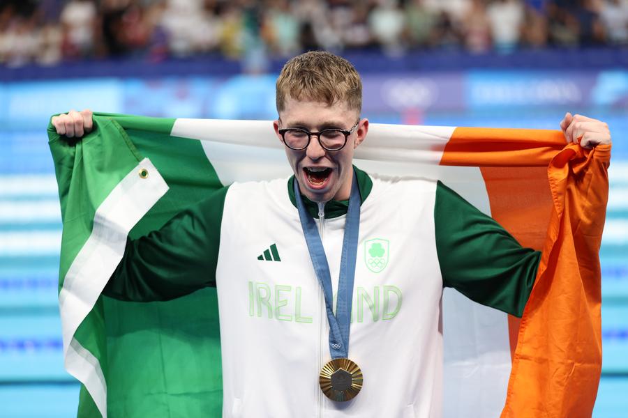 PARIS, July 31 (Xinhua) -- Swimmer Daniel Wiffen secured Ireland's first gold medal of the Paris Olympics, setting a new Olympic record en route to victory in the men's 800m freestyle final on Tuesday.