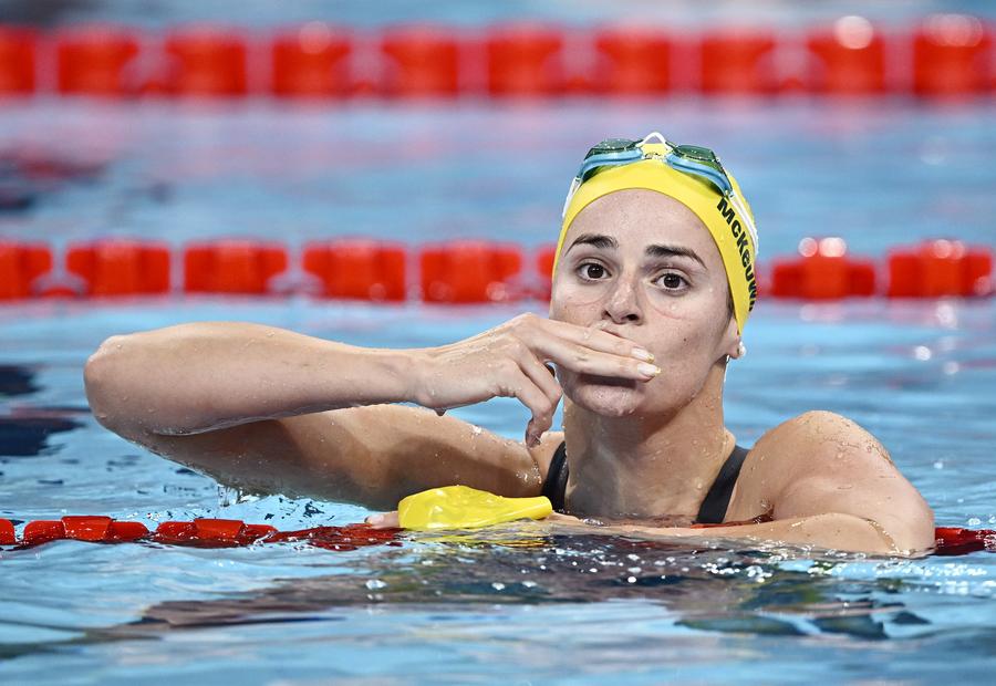 McKeown finished in 57.33 seconds, beating her own previous mark of 57.47 set in Tokyo three years ago. American world record holder Regan Smith took silver in 57.66 and her compatriot Katharine Berkoff claimed bronze in 57.98.