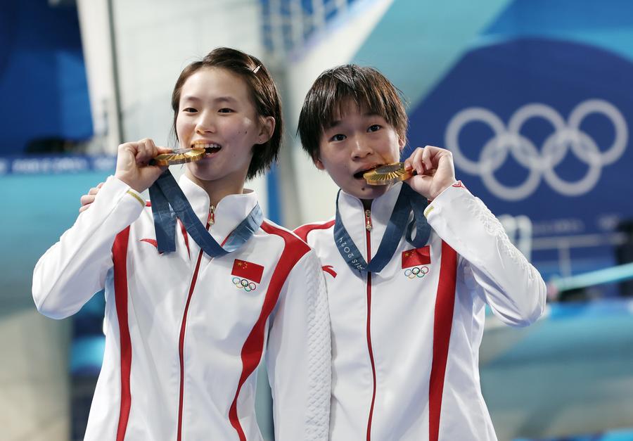 China's Chen Yuxi and Quan Hongchan struck gold with 359.10 points in women's synchro 10m platform at the Paris Olympics, followed by the silver medalists Kim Mi Rae and Jo Jin Mi of DPR Korea and bronze medalists Andrea Spendolini Sirieix and Lois Toulson of Britain.
