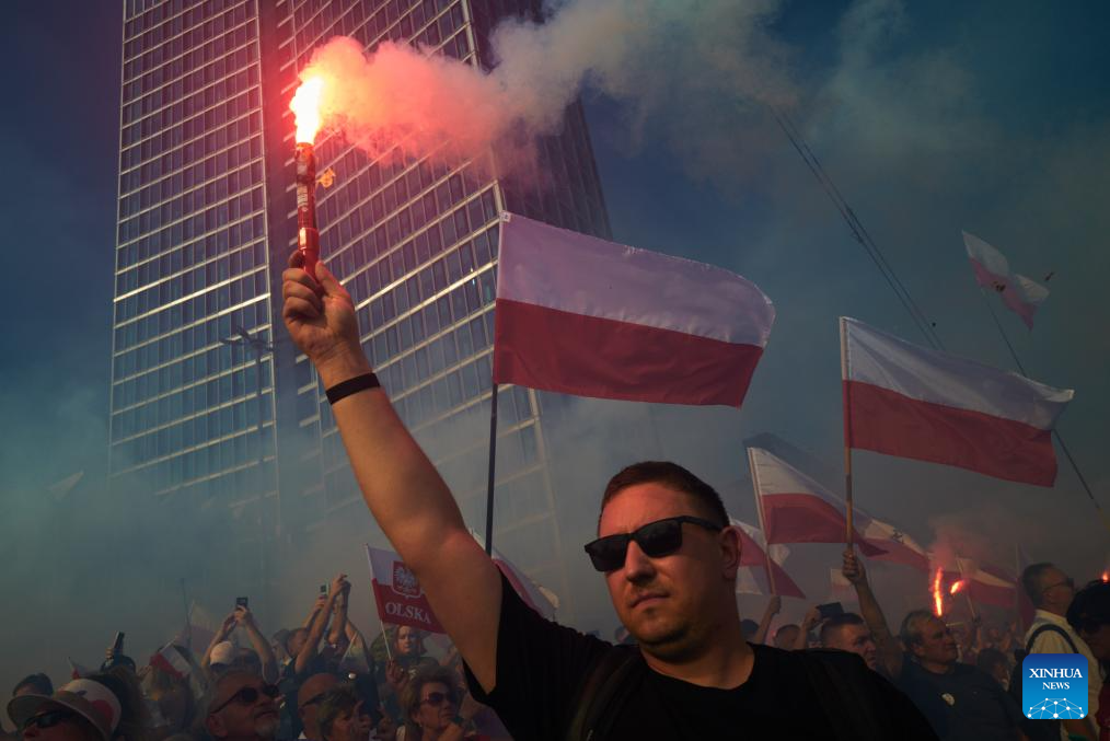 People gather to commemorate the Warsaw Uprising in Warsaw, Poland, on Aug. 1, 2024. (Photo by Jaap Arriens/Xinhua)