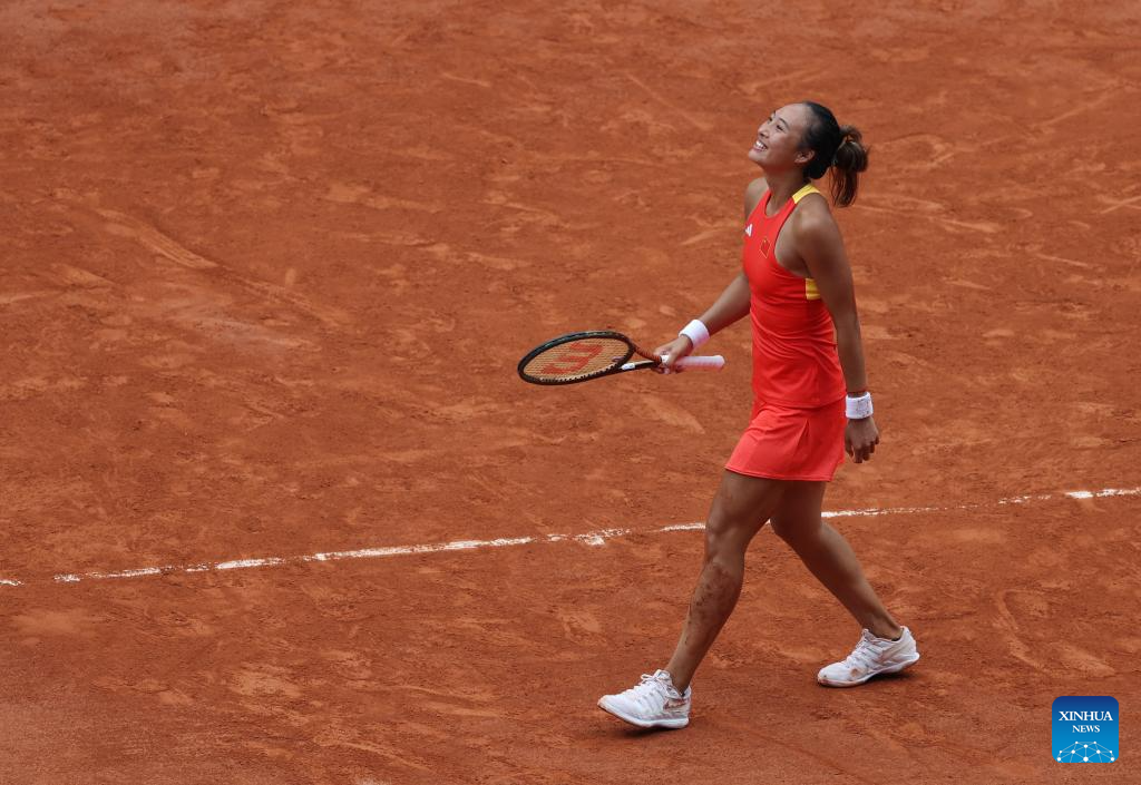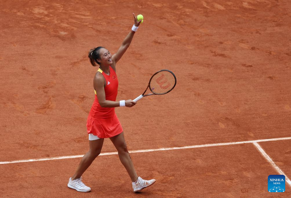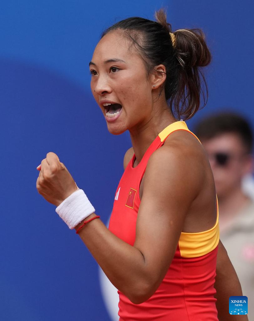 PARIS, Aug. 1 (Xinhua) -- Australian Open finalist Zheng Qinwen upset top seed Iga Swiatek 6-2, 7-5 in a historic win to book her place in the gold medal match of Olympic women's singles here at Roland Garros on Thursday.