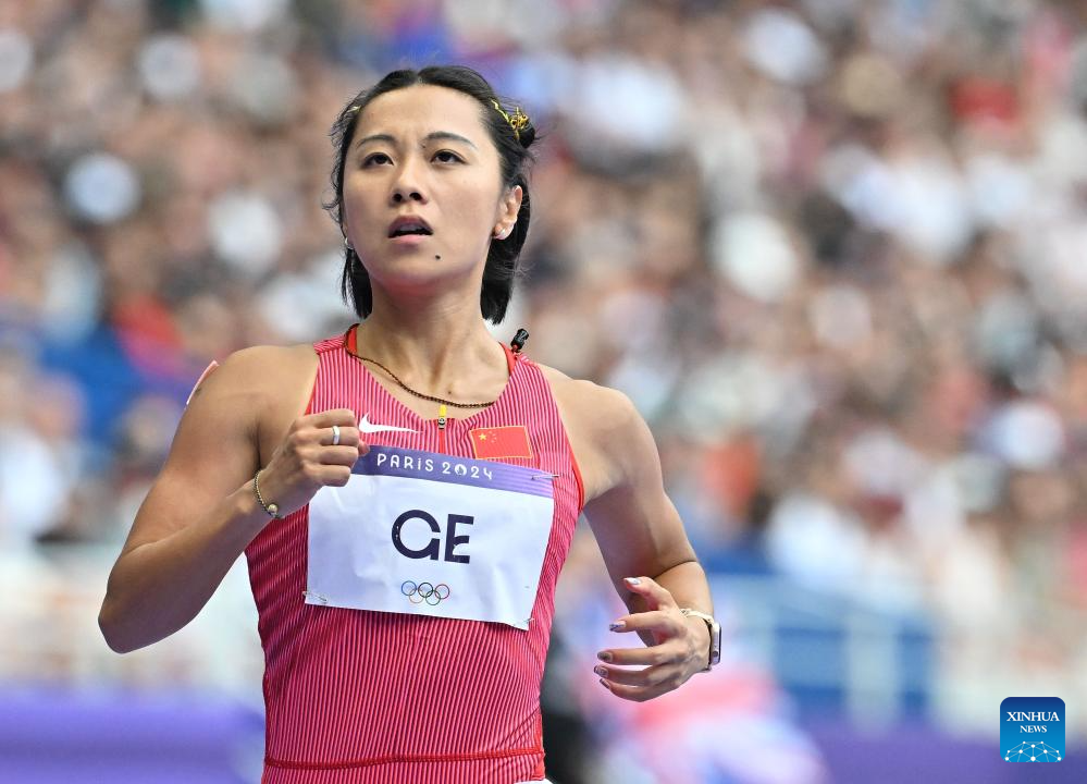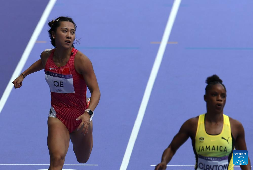Ge Manqi of China competes during the women's 100m round 1 of Athletics at the Paris 2024 Olympic Games in Paris, France, Aug. 2, 2024. (Xinhua/Li Ming)