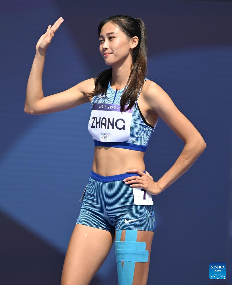 Zhang Bo-Ya of Chinese Taipei reacts before the women's 100m round 1 of Athletics at the Paris 2024 Olympic Games in Paris, France, Aug. 2, 2024. (Xinhua/Li Jing) (Xinhua/Song Yanhua)