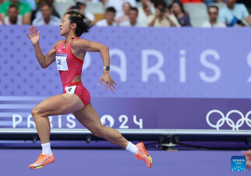 Ge Manqi of China competes during the women's 100m round 1 of Athletics at the Paris 2024 Olympic Games in Paris, France, Aug. 2, 2024. (Xinhua/Song Yanhua)