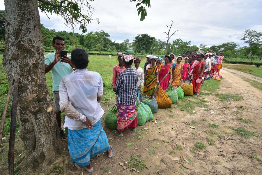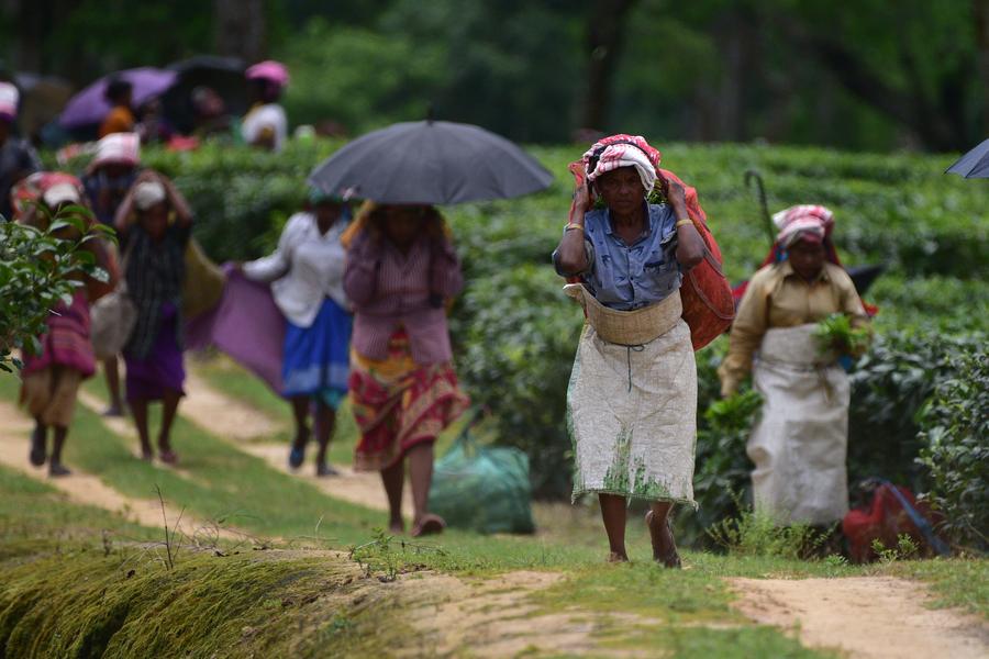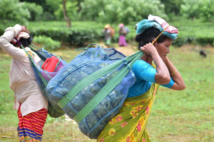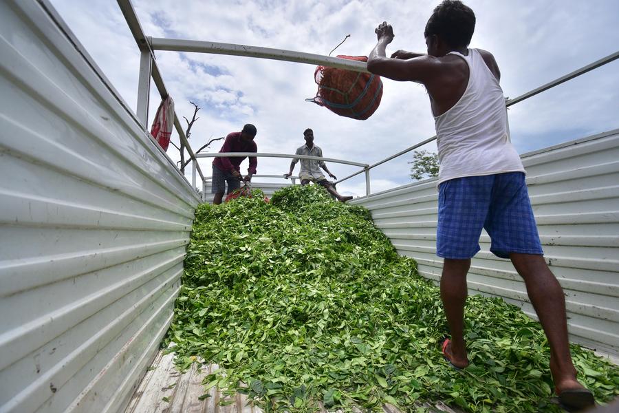 Workers carry newly picked tea leaves at a tea garden in Nagaon district of India's northeastern state of Assam, Aug. 1, 2024. (Str/Xinhua)Workers carry newly picked tea leaves at a tea garden in Nagaon district of India's northeastern state of Assam, Aug. 1, 2024. (Str/Xinhua)A worker carries newly picked tea leaves at a tea garden in Nagaon district of India's northeastern state of Assam, Aug. 1, 2024. (Str/Xinhua)Workers load freshly plucked tea leaves to a carrier at a tea garden in Nagaon district of India's northeastern state of Assam, Aug. 1, 2024. (Str/Xinhua)Workers have their picked tea leaves weighed at a tea garden in Nagaon district of India's northeastern state of Assam, Aug. 1, 2024. (Str/Xinhua)■